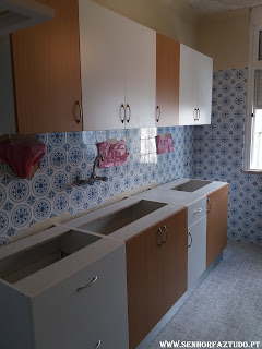 Montagem da cozinha Leroy Merlin no apartamento da arrentela, onde foram também feitos os trabalhos de remodelação da casa de banho, colocação de pavimento flutuante e pintura das portas e aduelas.