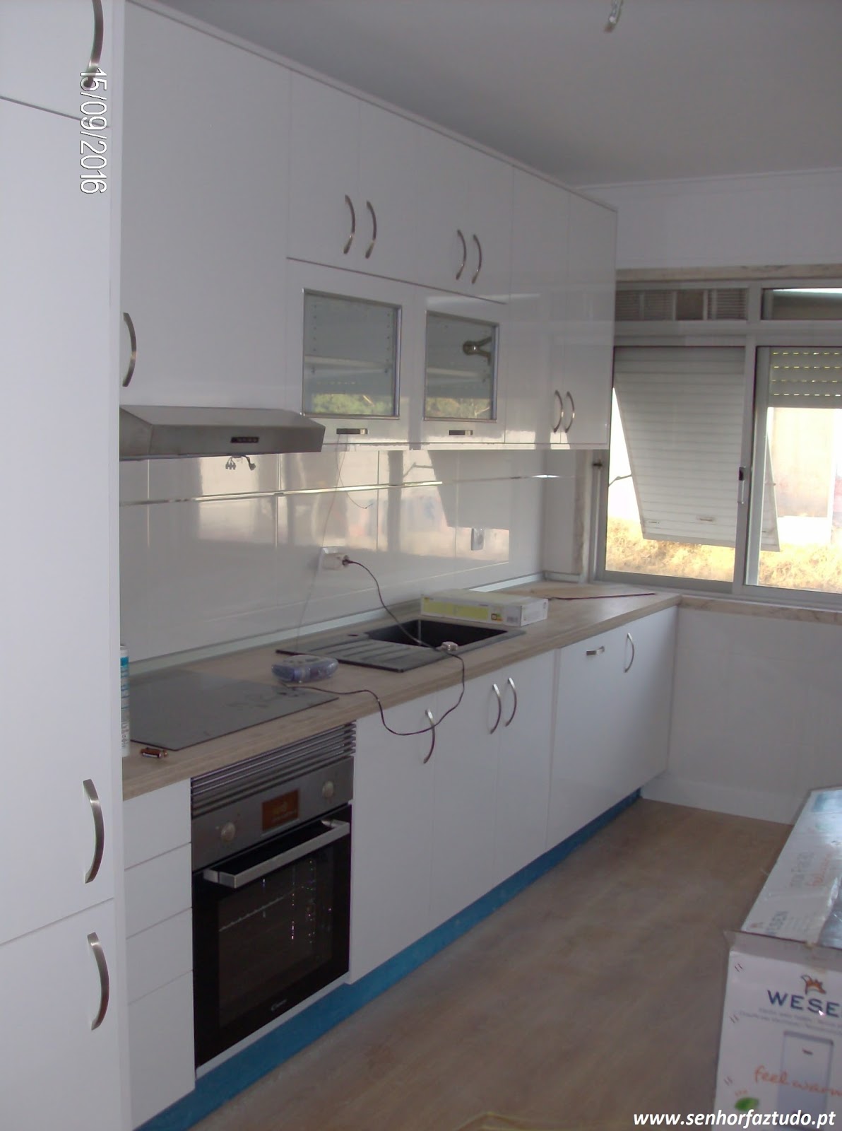 Depois de já termos colocado on trabalho de pintura do apartamento da Damaia, chegou a vez de colocarmos o trabalho de remodelação da cozinha.